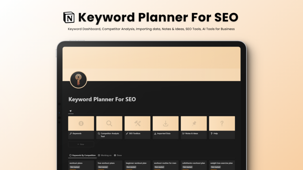 Manage your keywords, competitors & notes easily with the Keyword Planner For SEO (Notion Template)